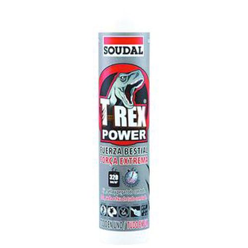 El adhesivo T-Rex Power es el sellador universal más versátil y completo del mercado, ya que tiene la fuerza suficiente como para pegar y sellar todo tipo de objeto, sobre cualquier material y circunstancia, incluso bajo las condiciones más severas. Este pegamento todo en uno, posee una formulación a base de un monocomponente neutro de polímero SMX, que no contiene elementos químicos añadidos ni solventes, el cual le permite ser utilizado en entornos sanitarios; así mismo, ofrece una adherencia superior de unos 320 ton/m² aproximadamente, con un tiempo de secado instantáneo de 1 segundo, por lo que es ideal para trabajos en posiciones verticales, así como horizontales. Con el adhesivo T-REX se pueden realizar montajes de piedras, pizarras o baldosas sobre cualquier superficie, tanto porosas o lisas, con mucha facilidad gracias a su excepcional fuerza inicial de adhesión; además, posee una gran elasticidad, una alta resistencia al impacto y a la constante exposición al ambiente, por lo que puede aplicarse en espacios interiores y exteriores, incluso en lugares húmedos o sumergidos en agua, sin que se comprometa su integridad. Presentación del producto: Cartucho de adhesivo T-REX POWER en color gris (sin cánula). Capacidad: 290 ML.