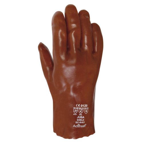 - Este guante protege contra las siguientes sustancias químicas: Metanol (nivel 2, >30 minutos), Hidróxido Sódico 40% (nivel 6, >480 minutos), Ácido sulfúrico 96% (nivel 3, >60 minutos), Ácido nítrico 65% (nivel 3, >60 minutos), Peróxido de hidrógeno 30% (nivel 6, >480 minutos), Ácido fluorhídrico 40% (nivel 5, 360 minutos) y Formaldehído 37% (nivel 6, >480 minutos).